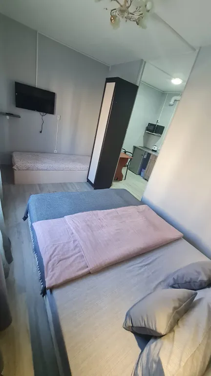 В комнате кровать трансформер конфигурация - двуспальная кровать или две раздельные кровати, сообщите заранее!