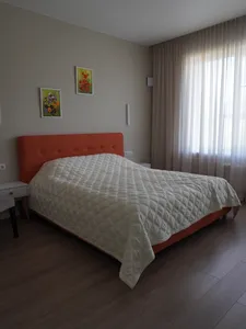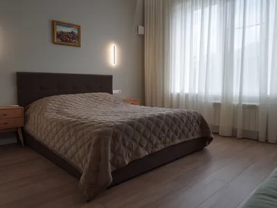 Гостевой дом рассчитан на 6 двухместных номеров. На первом этаже дома к услугам гостей просторная гостиная с мягкой зоной отдыха и большим телевизором, камином, столовая с панорамными окнами и террасой. На втором